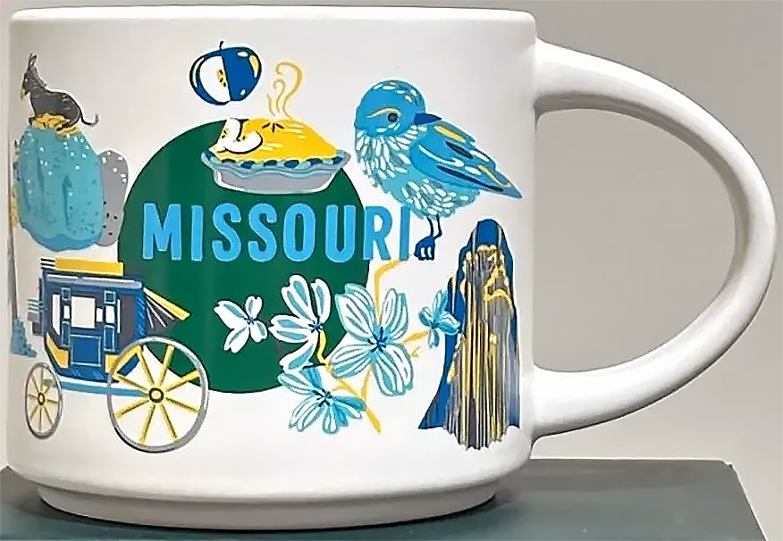 Discovery Series – Kansas City joins the earlier release of the ornament for the same city. I mentioned the following symbols from the design of the ornament in the previous post: Kansas City Jazz, Love Lock Bridge, Kansas City Union Station and The 18th and Vine District. Let’s see what other symbols and landmarks the bigger mug showcases.