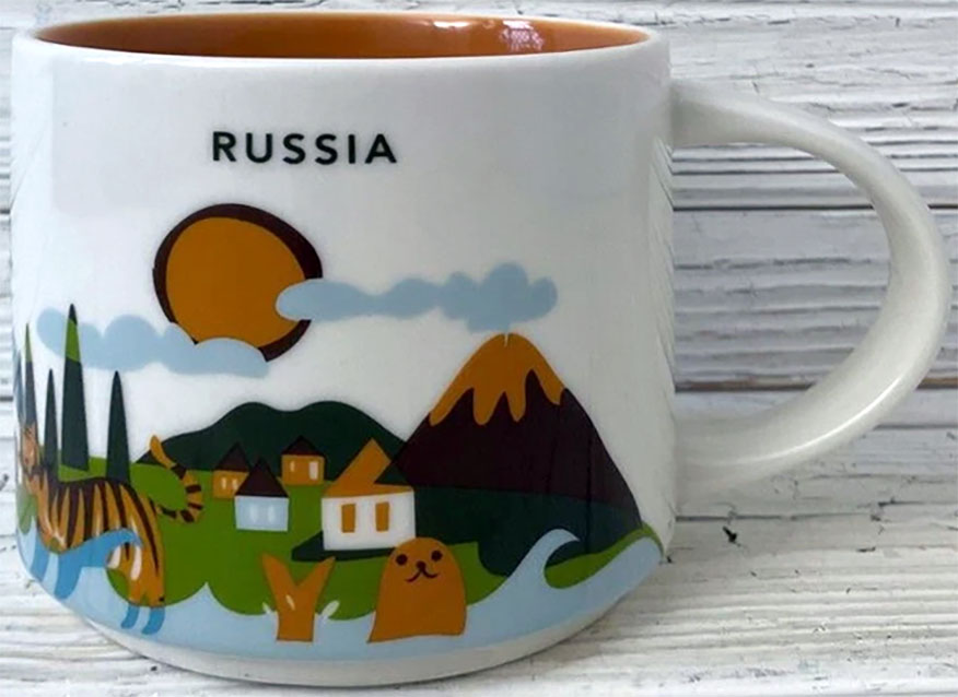 Yet another mug from Arabian Peninsula – Starbucks You Are Here United Arab Emirates. The design is pretty simple and apart from a horse silhouette (The Arabian horse is one of the most easily recognizable horse breeds in the world thanks to its distinctive head shape and high tail carriage), we can see the skyline of Dubai. The tallest building in Dubai and the whole world is the Burj Khalifa. It has 163 floors and is 2,722 ft high!