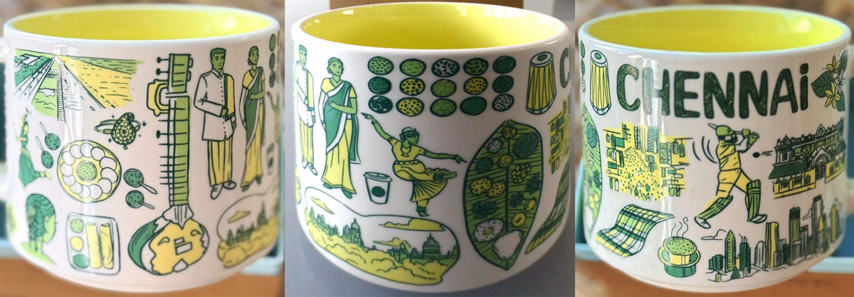 Been There Chennai is a mug for the capital of Tamil Nadu. The history of the city begins with its founding in 1639, when the British East India Company established Fort St. George on a strip of coastal land. Originally called Madras, the city grew from a small fishing village into a major colonial port and administrative center under British rule. Chennai became the gateway to South India and a center of Tamil culture, literature, and classical arts that flourished alongside colonial development. After Indian independence in 1947, the city continued to grow as a manufacturing hub and IT center, and in 1996, Madras was officially renamed Chennai, reclaiming its Tamil identity while emerging as one of India’s four major metropolitan cities.
