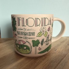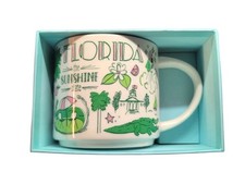 The Sunshine State is presented as the green Starbucks Been There Florida mug. It’s hard to imagine Florida without alligators and palm trees, thus they obviously made their way to the front of the mug. There’s more to discover, stay tuned.