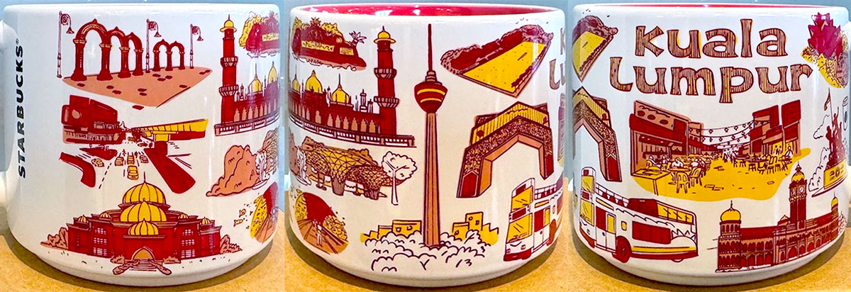 Most of the landmarks and symbols that we’ve reviewed in the post about the ornament can also be found in the design of this Been There Kuala Lumpur mug. Let’s compare these two.