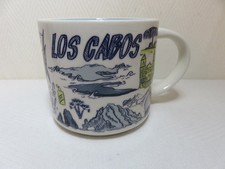 Starbucks Been There – Los Cabos is a mug for a municipality located at the southern tip of Mexico’s Baja California Peninsula, in the state of Baja California Sur. It is, in fact, two towns linked by a twenty-mile Resort Corridor of beach-front properties and golf courses. The smaller town, San José del Cabo, is the municipal seat, while the bigger one, Cabo San Lucas, is far more commercial with a nice marina and entertainment district. It was not always the case, as up to the 1990s it was a small rural fishing village. Thanks to Mexican Government efforts this area is being developed now into a popular tourist destination. This is why the design of the mug is mostly dedicated to outdoor activities to try when visiting this amazing place. These include but not limited to: fishing, golf, scuba diving, snorkeling, surfing, kayaking, horseback riding, relaxing in luxury spas and resorts or just exploring natural beauty of this region. One of the most popular tourist attractions and the symbol of Los Cabos is El Arco (The Arch), which is a rock formation that erupts from the sea at the tip of the Baja Peninsula, where the Pacific Ocean meets the Sea of Cortez. You can see it on the front of the mug.