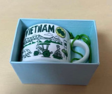 Starbucks Been There Ornament – Vietnam, along with the regular size mug, opens Asia for BT series. Similar to other mugs from this collection, the smaller ones have fewer items depicted or those elements are different. For this particular ornament, I would like to mention a Cycle Rickshaw, which is still a popular touristic attraction in many Vietnamese cities. This three-wheel bicycle taxi is called xích lô (pronounced “sick-low”, from the French cyclo) in Vietnam. The design includes a double seat supported by the two front wheels, with the driver sitting behind. It allows for unobstructed views during the ride. Keep in mind that most of the cyclos were banned from many major roads as traffic hazards and are not always useful for city tours.