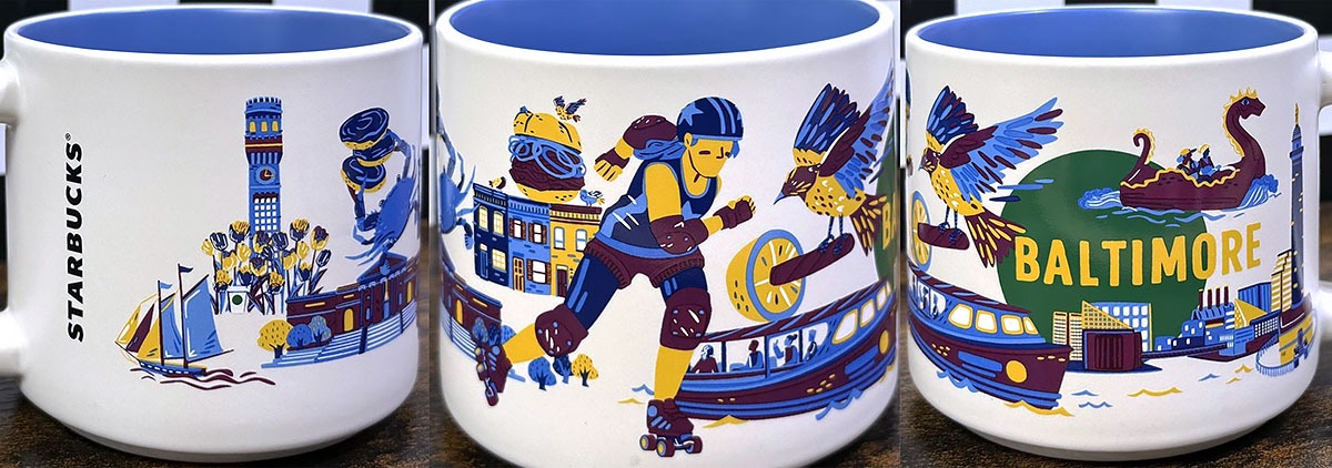 – The mug design captures Baltimore’s connection to the sea with images of sailboats gliding across the Inner Harbour. The harbour has long been the city’s heart, once bustling with merchant ships and now lined with museums, restaurants, and the iconic National Aquarium. It’s the place where locals gather and visitors first fall in love with the city’s waterfront charm.