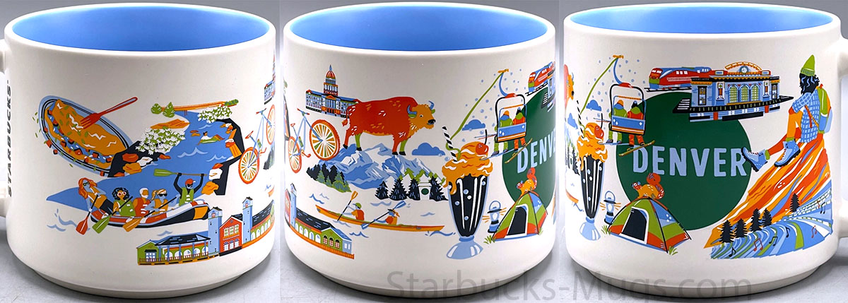 Starbucks Discovery Series Denver is a mug for the “Mile High City”. Its history begins with its founding in 1858 during the Pike’s Peak Gold Rush, when prospectors established a mining camp at the confluence of the South Platte River and Cherry Creek. The city was officially incorporated in 1861 and named after James W. Denver, the governor of Kansas Territory. Denver became the capital of Colorado when the state joined the Union in 1876, transforming from a rough frontier town into a thriving commercial hub. The arrival of the railroad in 1870 cemented Denver’s role as the economic and transportation center of the Rocky Mountain region, while the silver boom of the 1880s and later oil discoveries fueled decades of growth and prosperity.