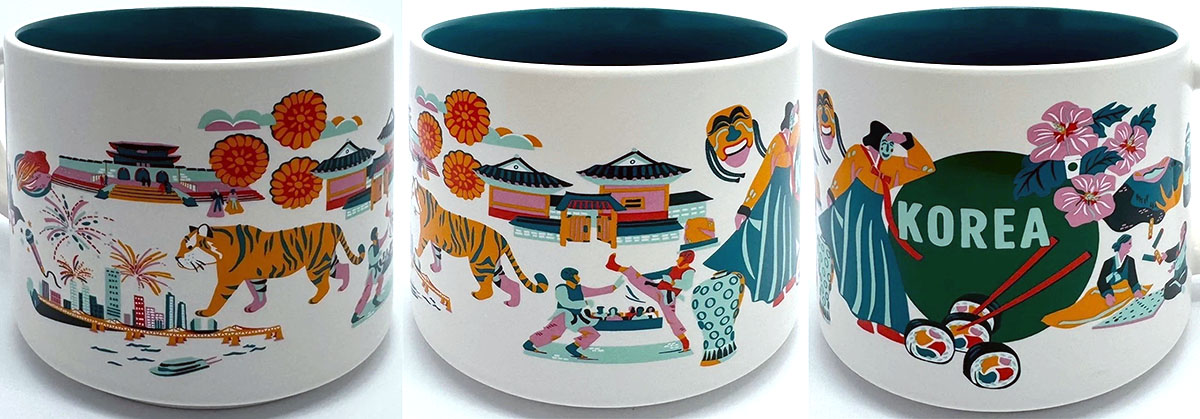 In addition to the Mugunghwa (Hibiscus syriacus), Gwanghwamun (gate), talchum (mask theater), Korean Tiger (Panthera Tigris), and Seoul International Fireworks Festival featured in the ornament review, here are the additional symbols and points of interest included in the design of the larger mug: