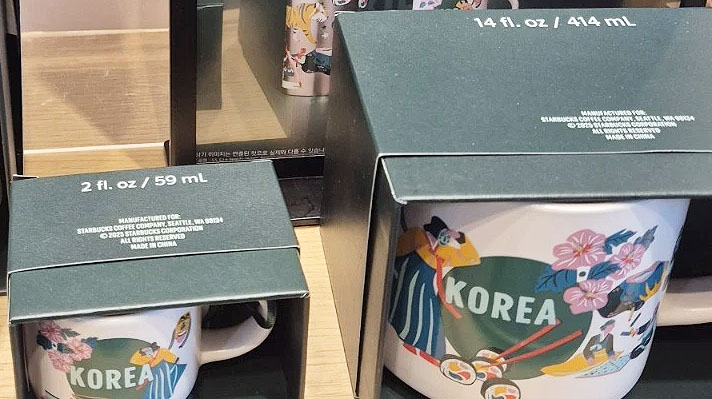We now have our first look at real-life photos of the Starbucks Discovery Series – Korea mug. At first glance, the box design appears nearly identical to those from the U.S. and Canada. However, there are a few subtle differences: the absence of French text indicating the country of origin, and the prominently displayed volume – 2 fl. oz / 59 mL for the ornament and 16 fl. oz / 414 mL for the mug (see the photo of the covers at the end of the article).