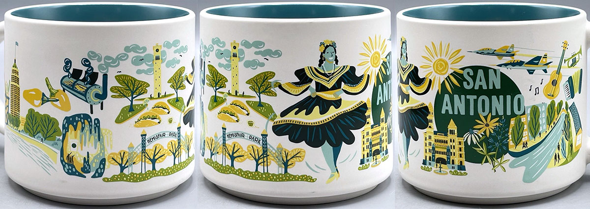 – The small planes shown in the illustration refer to Joint Base San Antonio, a major military presence that includes several key installations across the region. The base plays an important role in the local economy, supports training for thousands of service members, and has influenced the city’s growth for decades. Its appearance on the mug reflects how aviation and military heritage are interwoven with San Antonio’s identity.