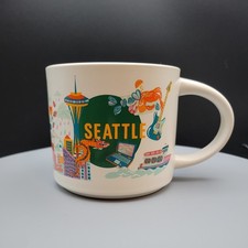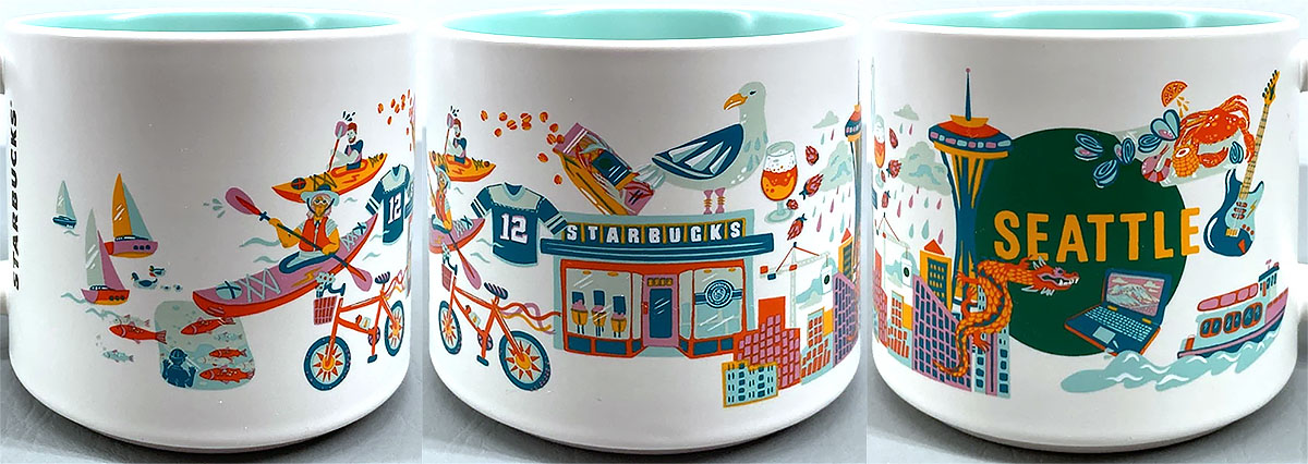 Some of the symbols and landmarks as seen in the design of the Discovery Series Seattle mug:
