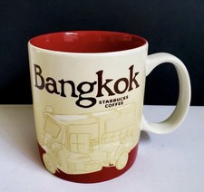 This Icon mug came from Bangkok, Thailand. Red is used as its theme color. Tuk-Tuk can be seen on the front of the mug and Bangkok Skyline on the back.