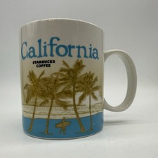 This Icon mug came from California, Usa. Light Blue is used as its theme color. California Beaches can be seen on the front of the mug and Chandelier Drive-Through Tree on the back.