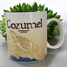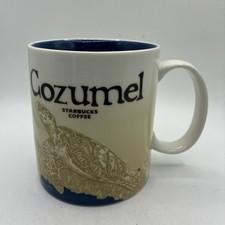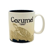 This Icon mug came from Cozumel, Mexico. Dark Blue is used as its theme color. Sea Turtle can be seen on the front of the mug and Cozumel Harbour on the back.