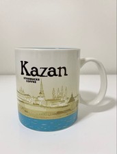 This Icon mug came from Kazan, Russia. Light Blue is used as its theme color. Kremlin can be seen on the front of the mug and Gate to Kremlin on the back.