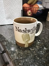This Icon mug came from Nashville, Usa. Brown is used as its theme color. Microphone Bicycle Rack can be seen on the front of the mug and Nashville City on the back.