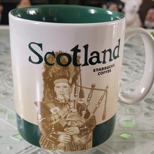 This Icon mug came from Scotland. Dark Green is used as its theme color. Great Highland Bagpipe can be seen on the front of the mug and Eilean Donan castle on the back.