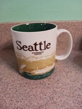This Icon mug came from Seattle, Usa. Dark Green is used as its theme color. Mt. Rainier can be seen on the front of the mug and Space Needle Skyline on the back.