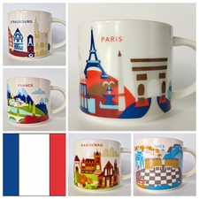 Mountains, Mont Saint-Michel, grapes, cheese, and wine (back of the mug) – all you need to know about France (according to Starbucks).