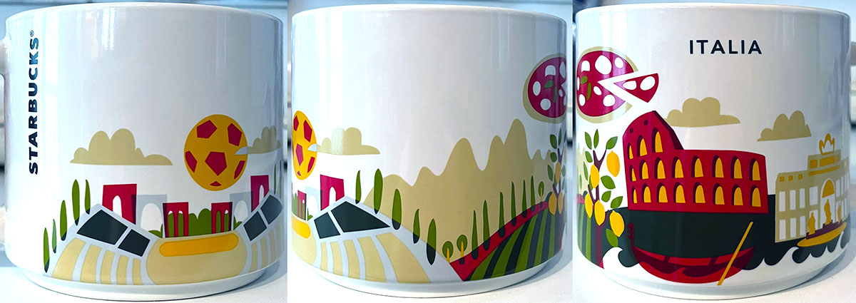 Thanks to a blog reader, I was finally able to acquire good photos of the newly released You Are Here Italia mug. It is essentially an exact copy of the mug released seven years ago, with the only difference being the use of the country’s name in Italian: Italia instead of Italy.