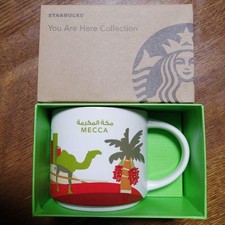 Interestingly enough, along with the Romanized name Mecca, designers included the city’s official name, Makkah al-Mukarramah, written in Arabic. We’ve seen this before in the case of the Saudi National Day mug.