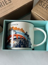 This new mug has so many elements I need time to identify them. So far I see Zurich lake and Alps behind it. The color is dark blue (my favorite).