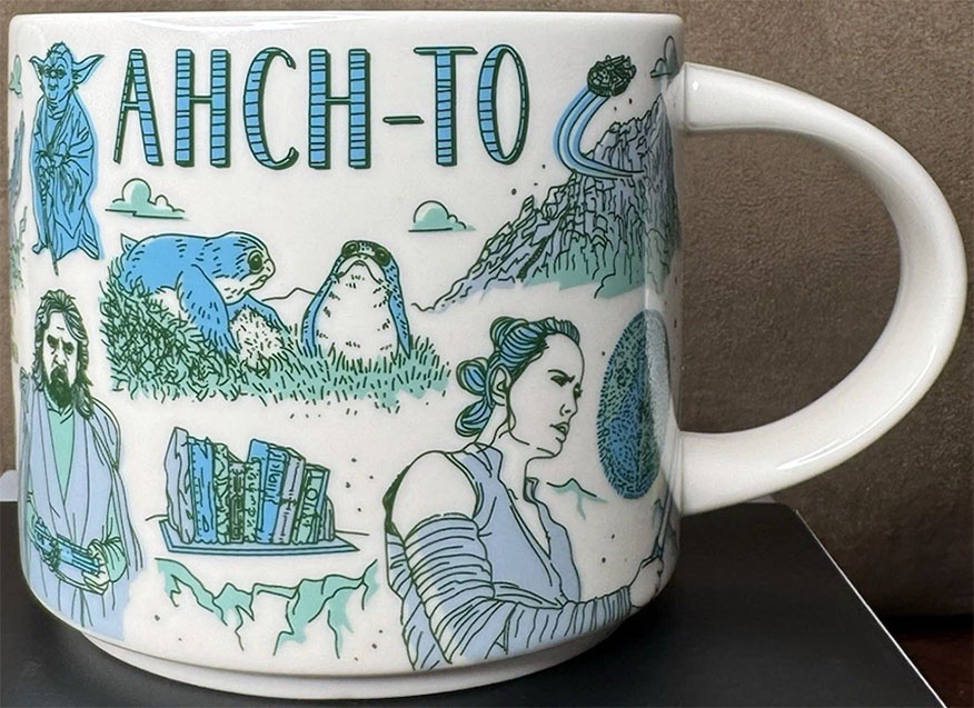 Starbucks Been There – Ahch-To is a mug for a planet from the Unknown Regions that was mostly covered with water and numerous rocky islands poking here and there. It was believed to be the birthplace of the Jedi Order. Luke Skywalker made this planet his home many years after the Galactic Civil War, you can see him on the front of the mug. It was Ahch-To where he agreed to train Rey (Skywalker) (the right side of the front of the mug).… Read more