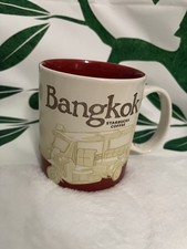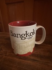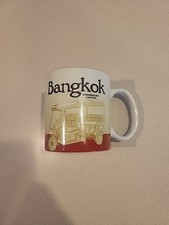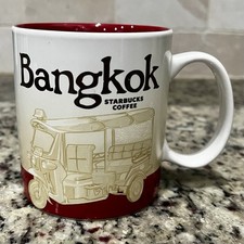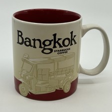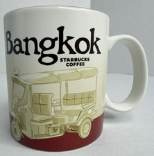 This Icon mug came from Bangkok, Thailand. Red is used as its theme color. Tuk-Tuk can be seen on the front of the mug and Bangkok Skyline on the back.