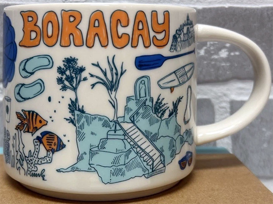 Starbucks Been There – Boracay is a mug for a small island in the central Philippines known for its resorts and beaches. No wonder that the design of the mug pretty much reflects the following activities, sorted from “easy” to more “adventurous”: