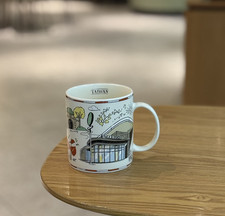 This Icon mug came from Taichung, Taiwan. Light Green is used as its theme color. Train Station can be seen on the front of the mug and Taichung Skyline on the back.