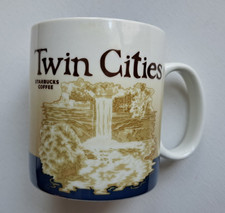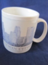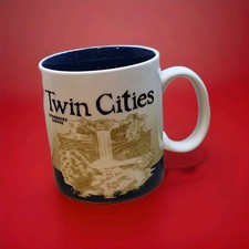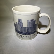 This Icon mug came from Twin Cities, Usa. Dark Blue is used as its theme color. Minnehaha Falls can be seen on the front of the mug and Twin Cities Skyline on the back.