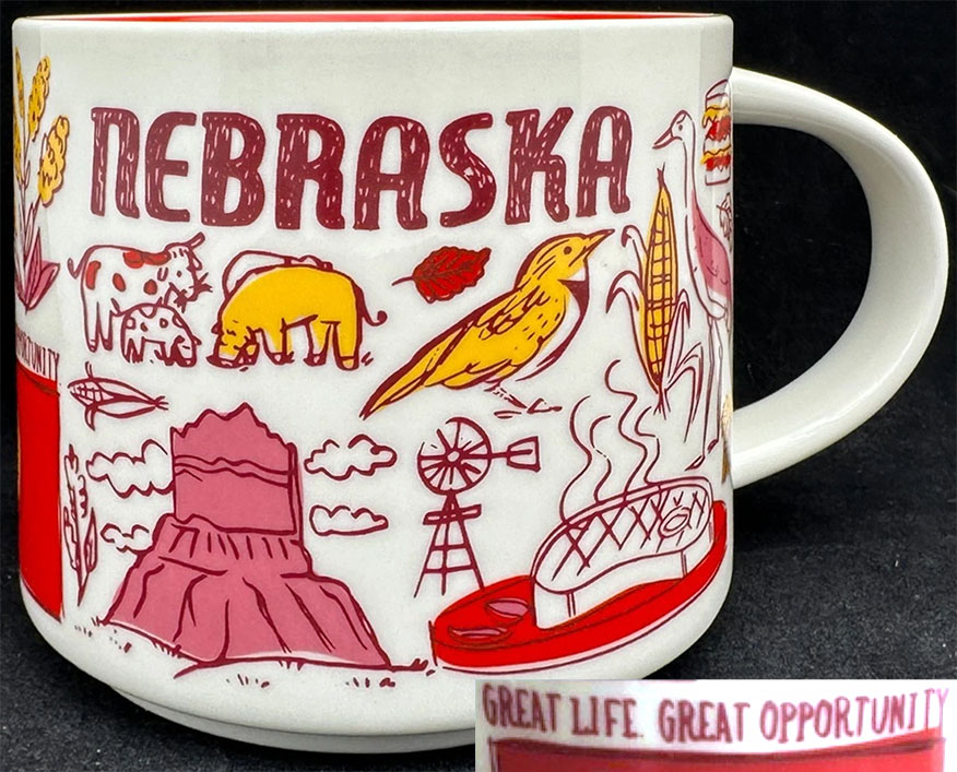 As you can see, the State slogan, above the flag, says: “Great Life Great Opportunity,” while Nebraska’s real brand is “Good Life.…