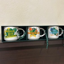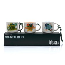 Discovery Series Wicked Ornament – Shiz University comes in a custom box with the other two ornaments from the Wicked-inspired set. Similarly to bigger mugs, the partnership between Starbucks and Wicked brands is emphasized with the addition of the trademark inside the mini mug. The box cover has “Wicked” branding on it as well.